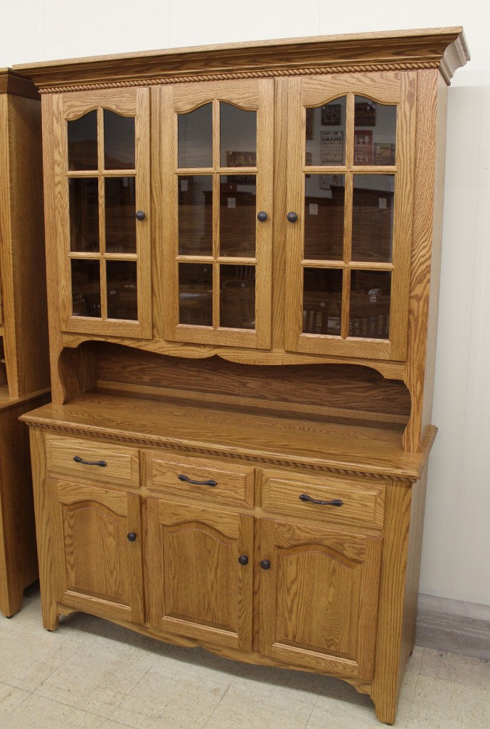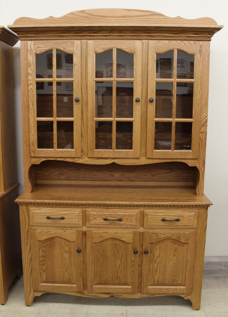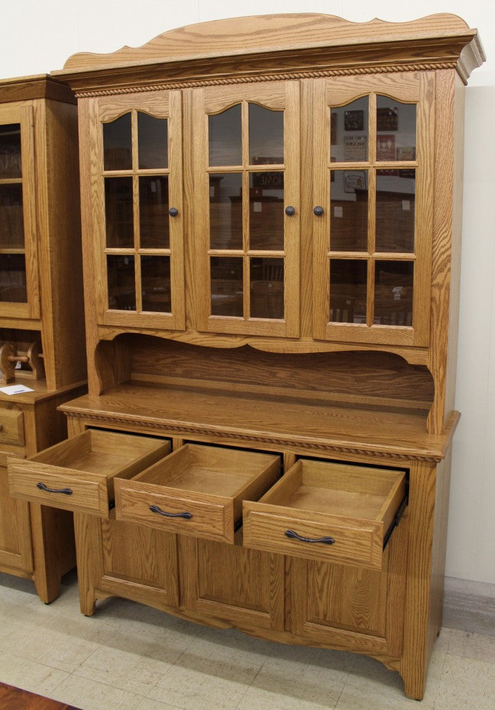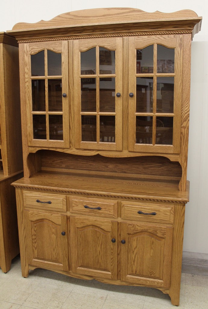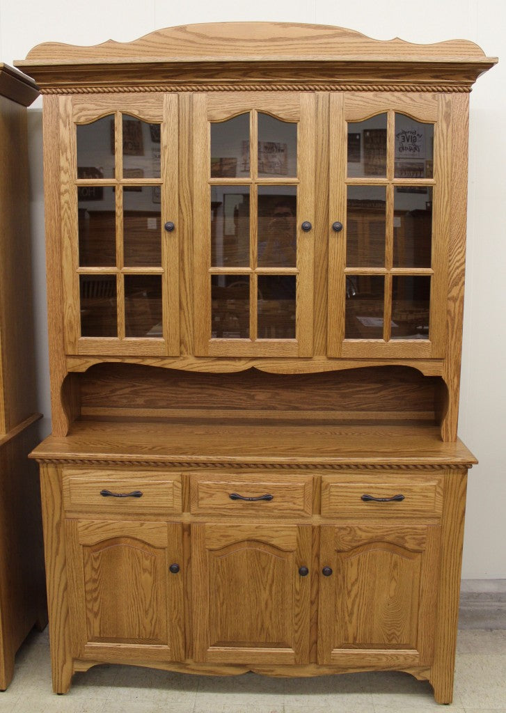 Amish 3-Door Country Hutch with Rope Twist Molding Oak (Many Other Wood Species Available)