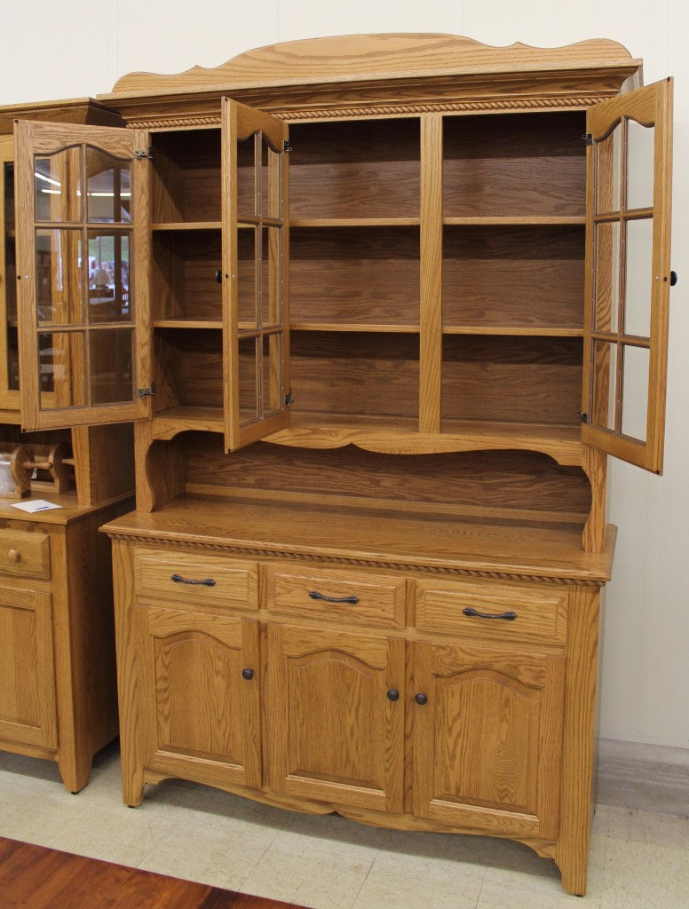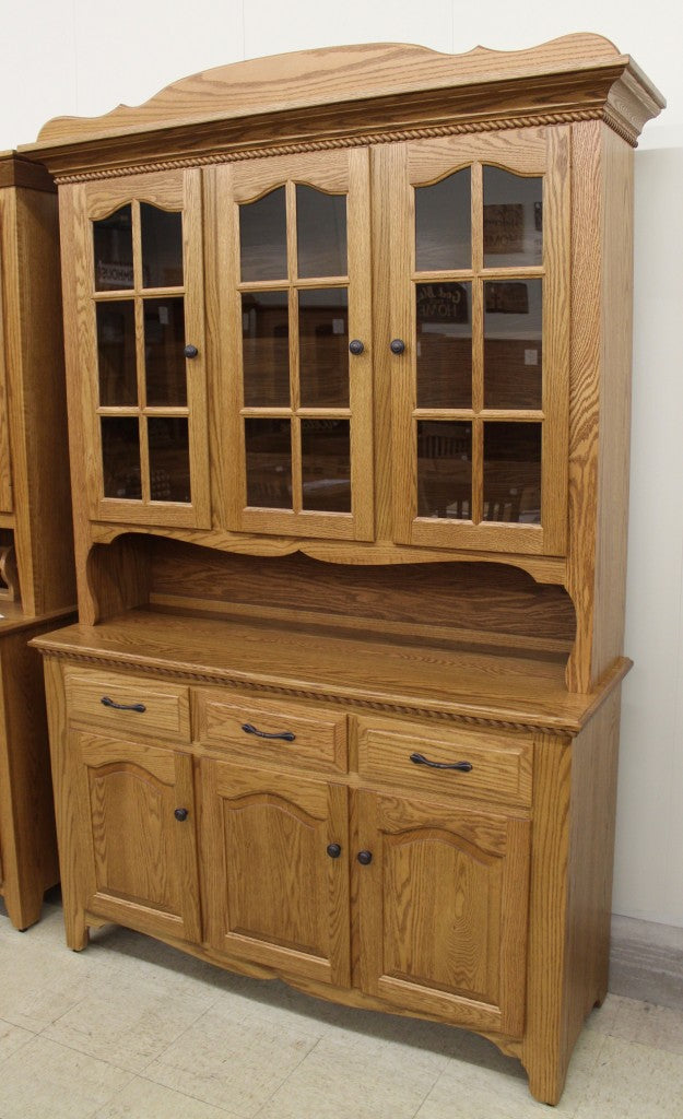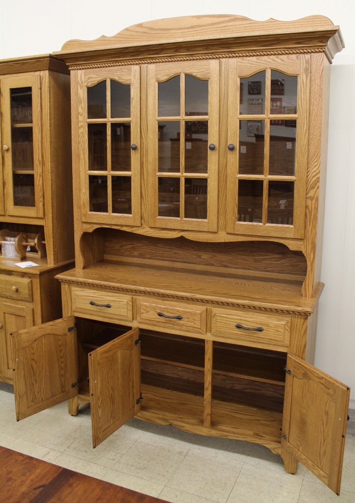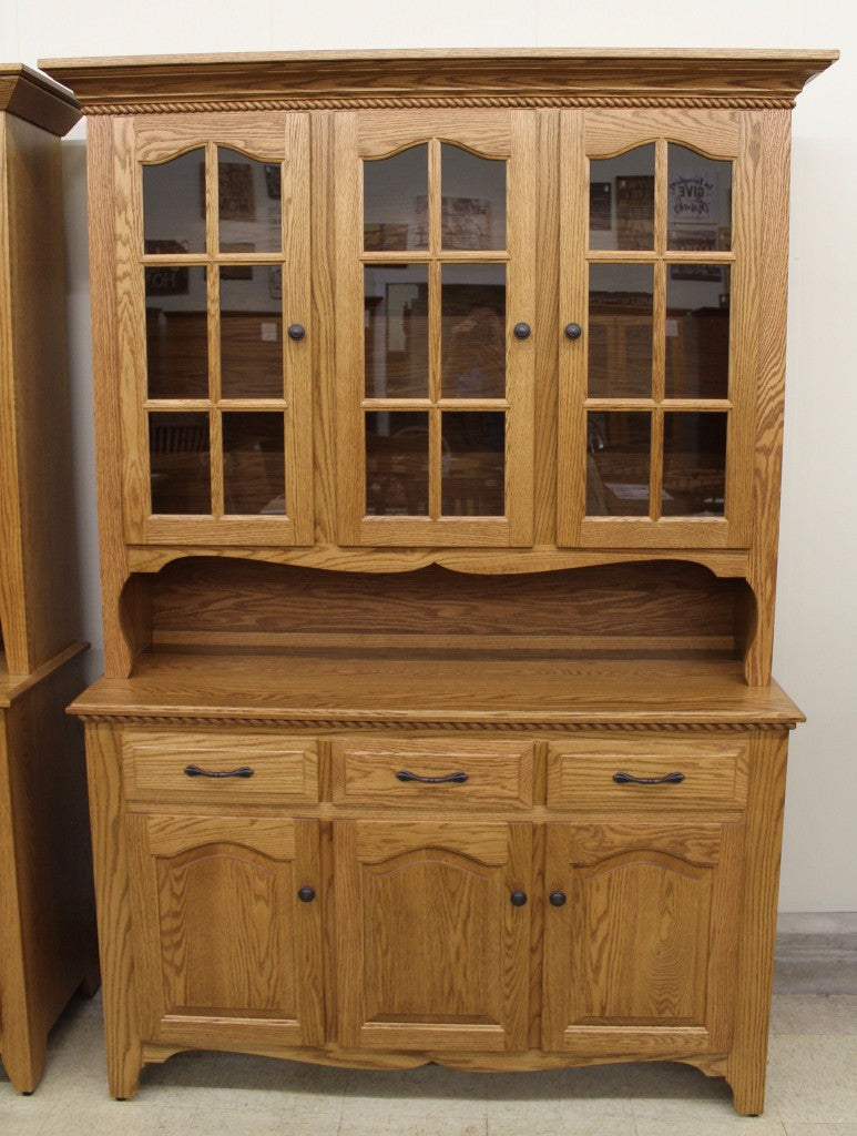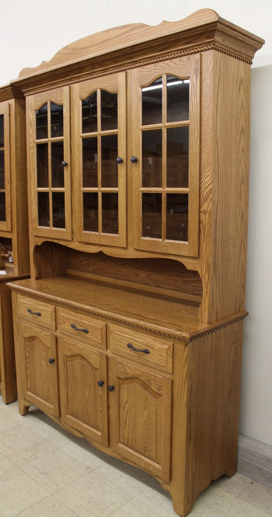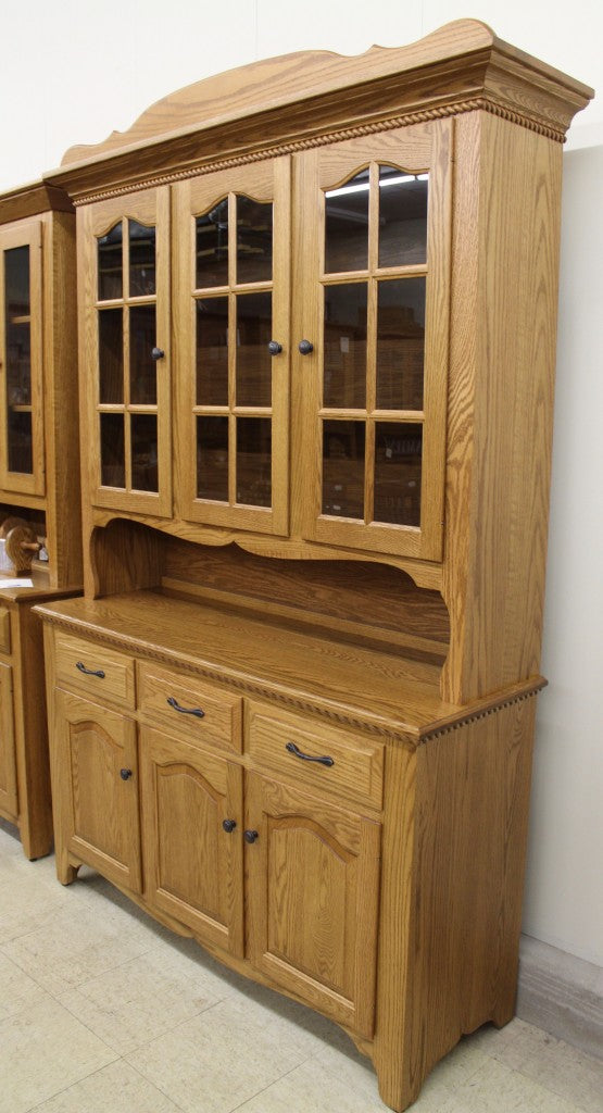 Amish 3-Door Country Hutch with Rope Twist Molding Oak (Many Other Wood Species Available)