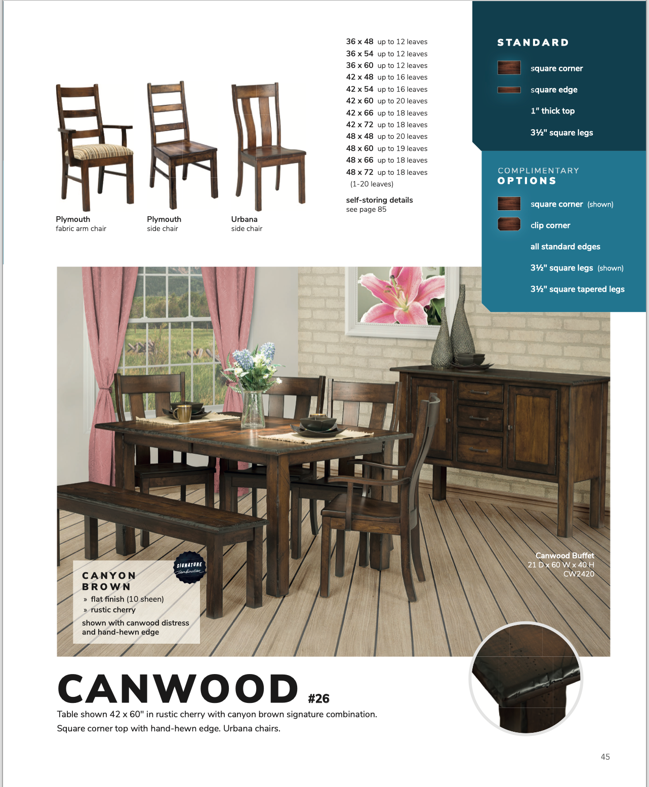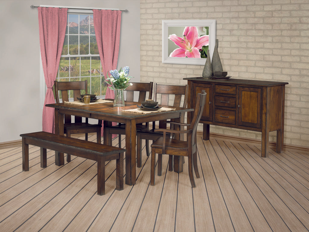 Set Includes 42" x 66" Table, No Leaves, 2 Arm Chairs, 2 Side Chairs, 66" Bench and Server - Contact us to order in other sizes and configurations!