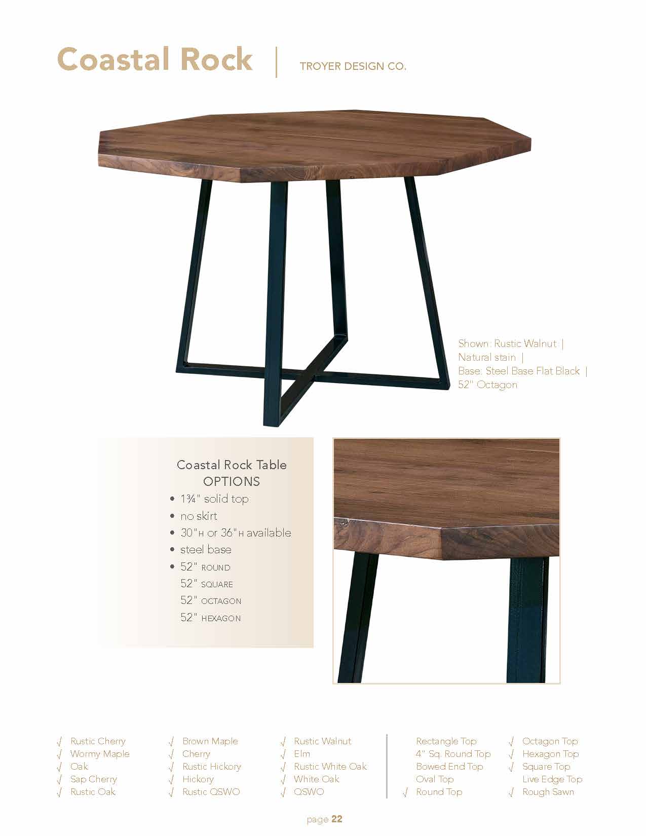 Shown: Rustic Walnut | Natural stain | Base: Steel Base Flat Black | 52" Octagon