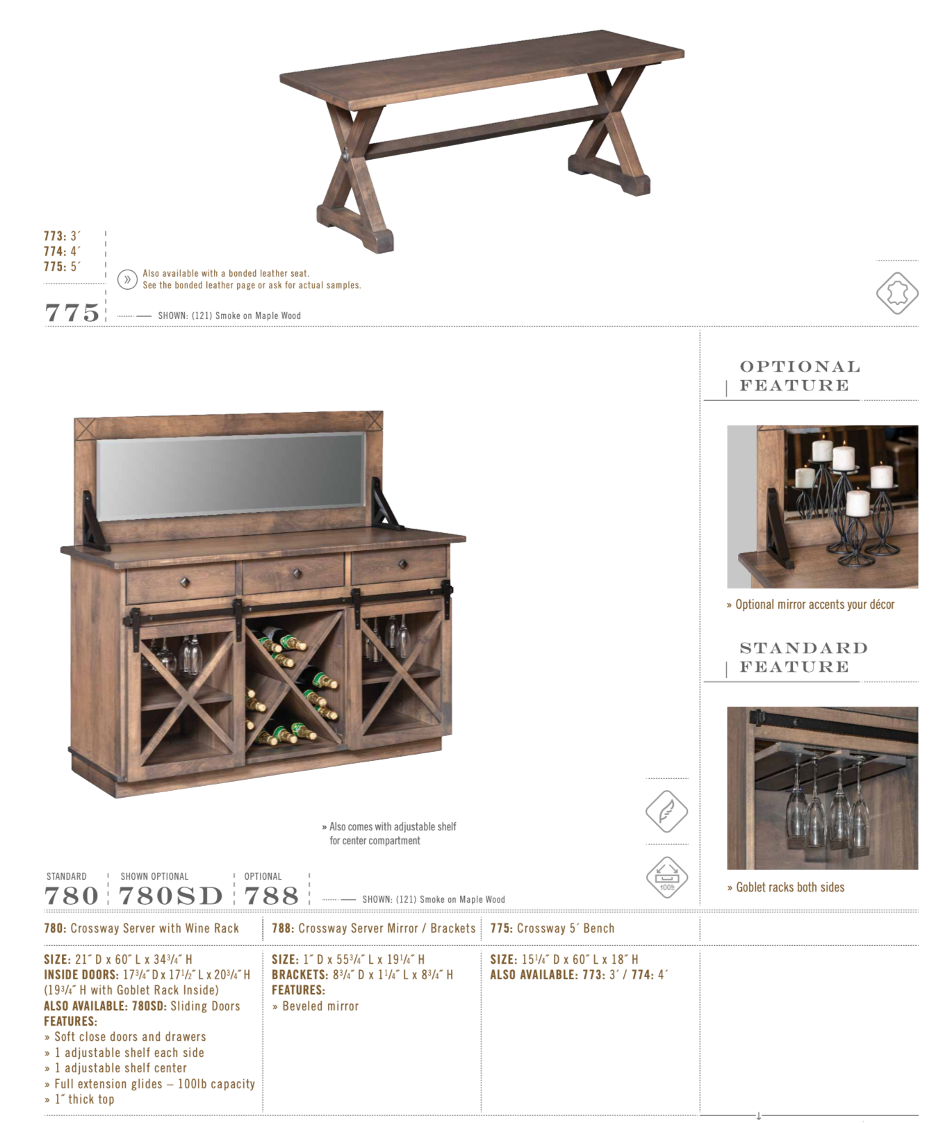 Custom Sizes and Dimensions: Most Tables, Hutches, Servers, Buffets, etc, are available in custom sizes if needed or preferred.