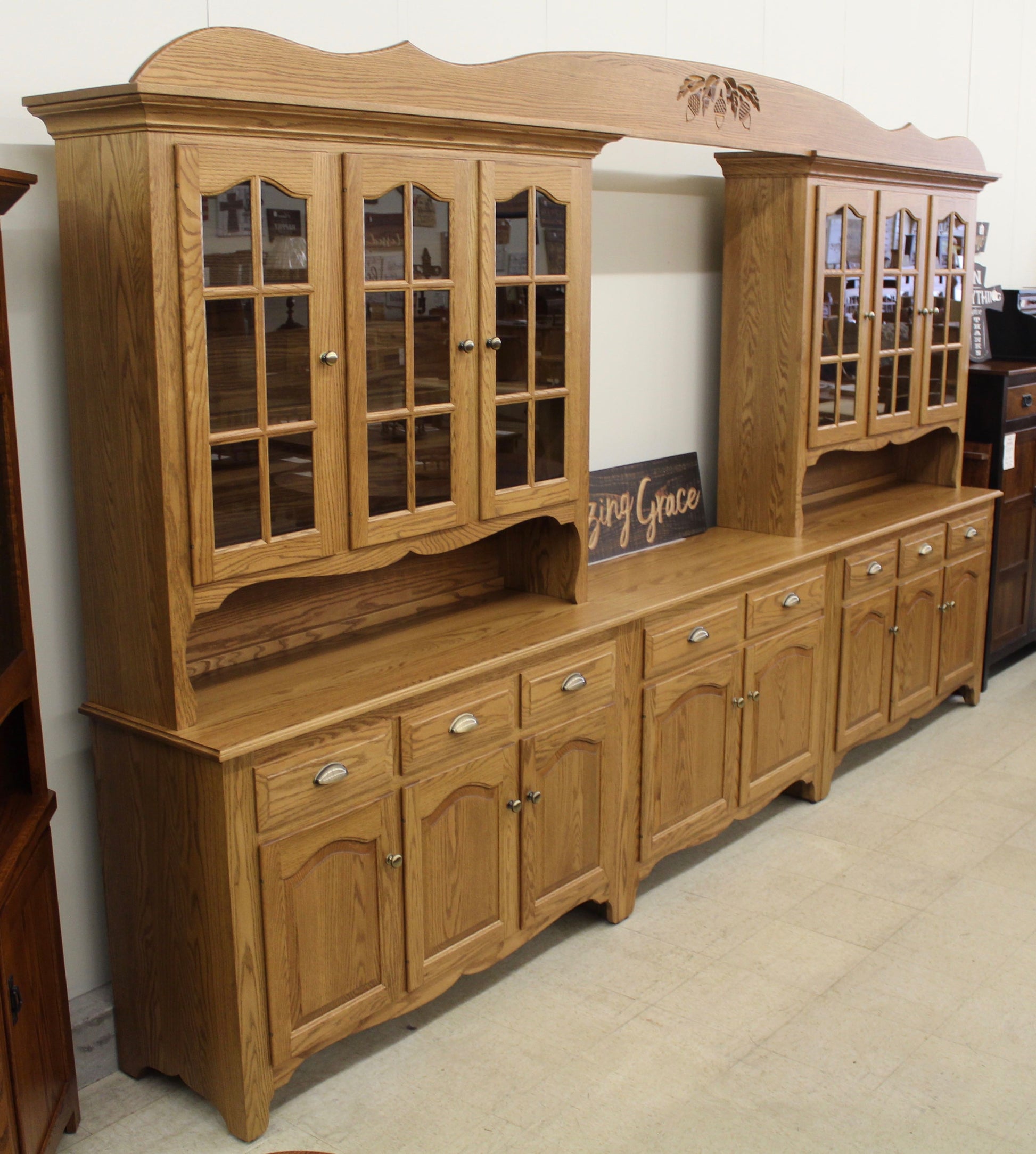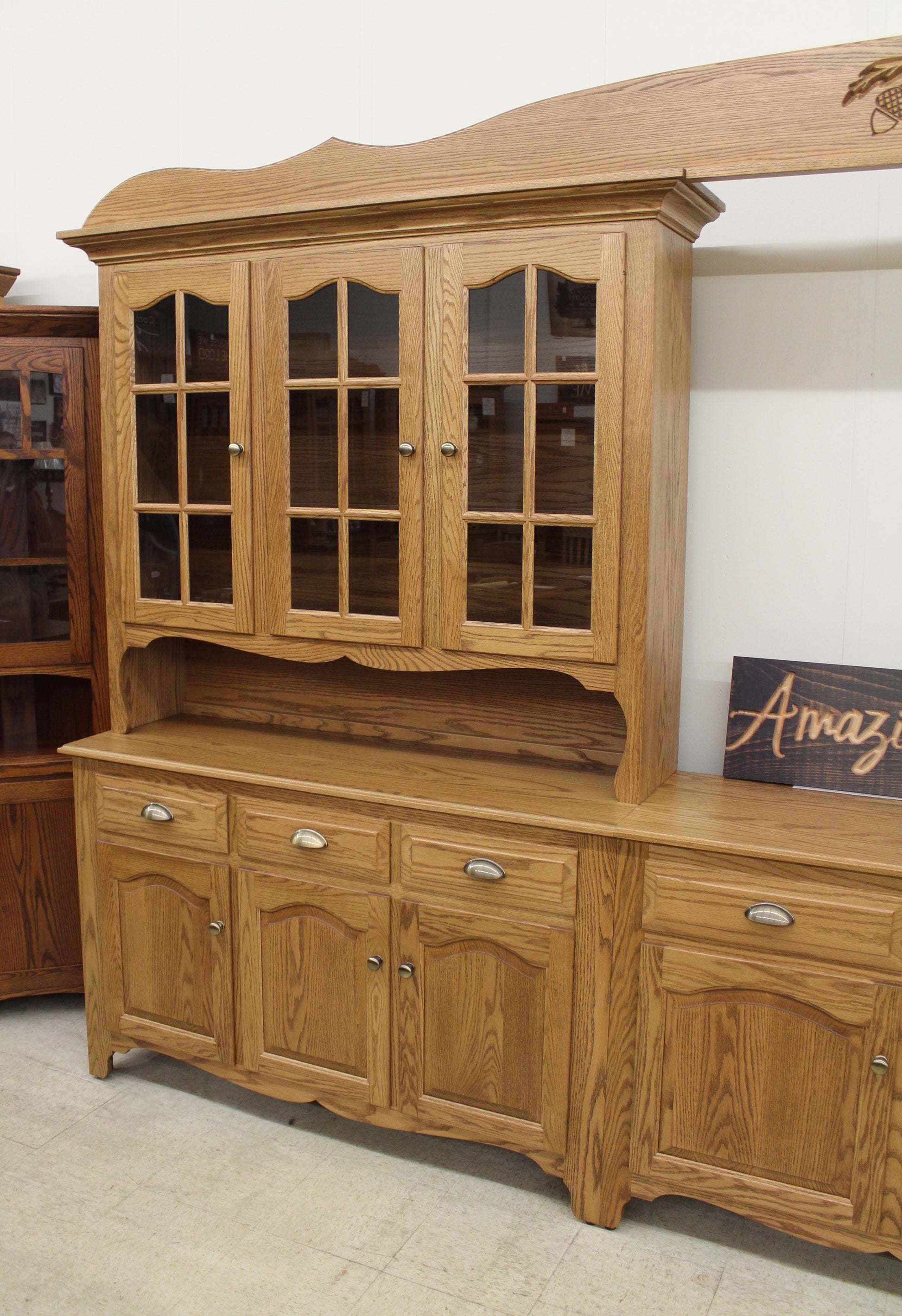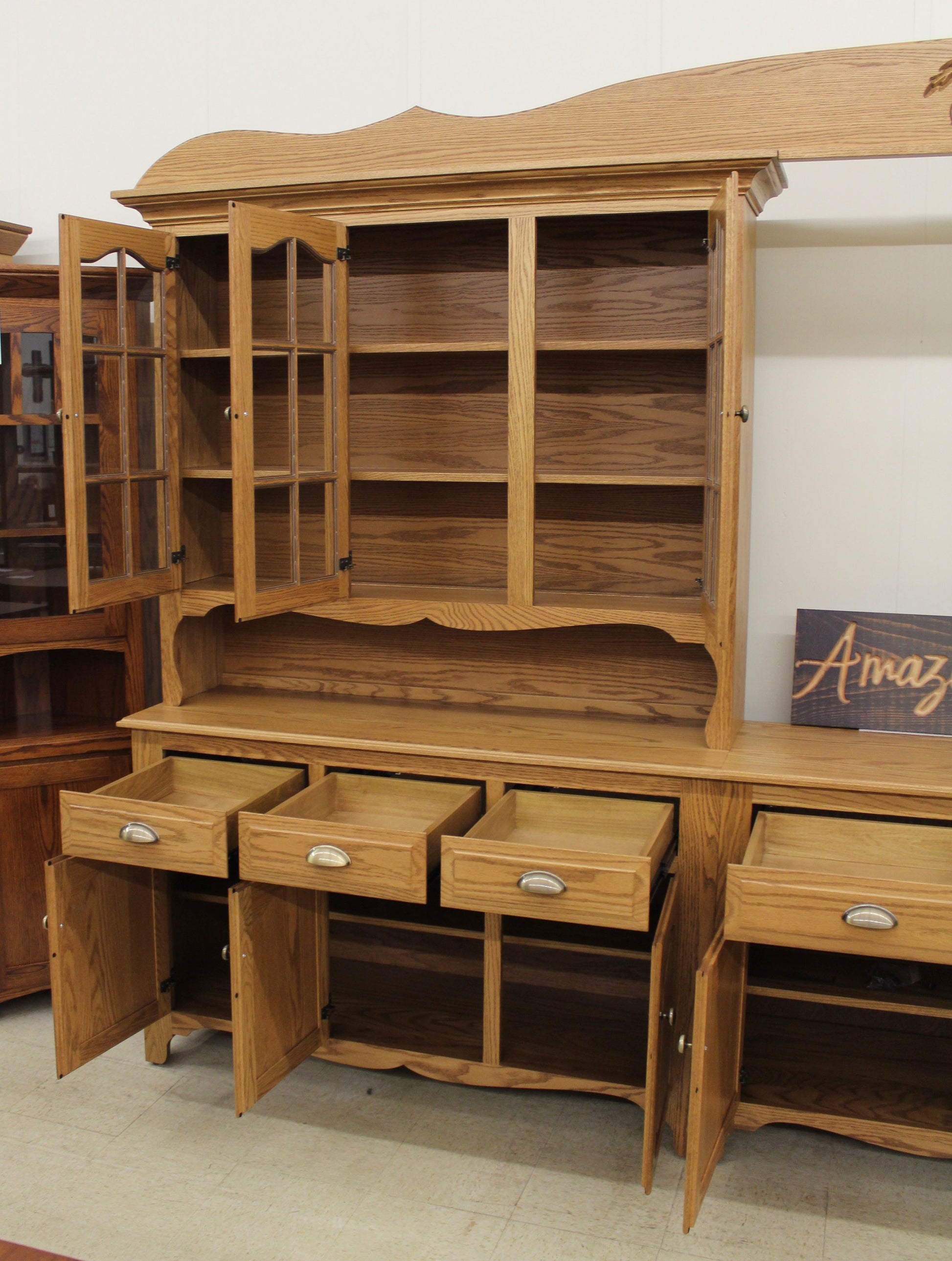 Amish Custom 8-Bay Country Hutch Oak (Many Other Wood Species Available)