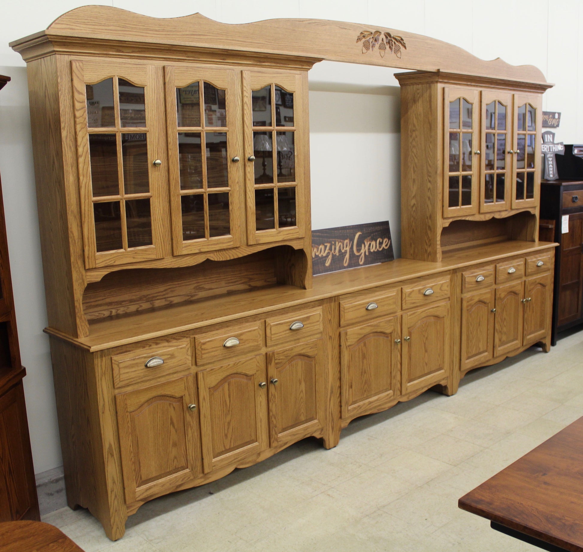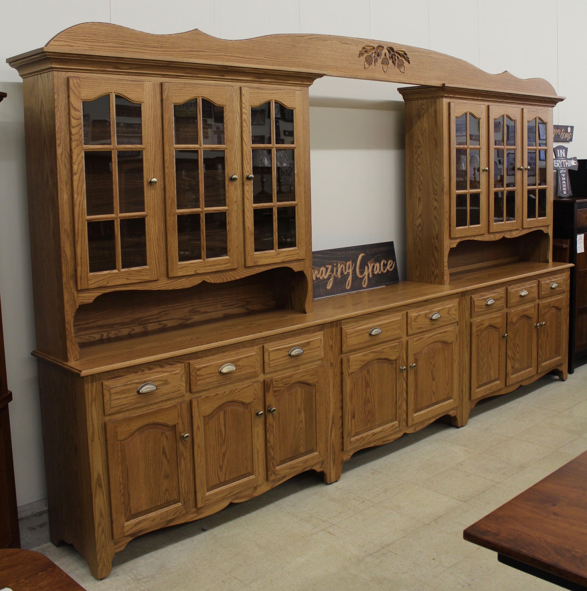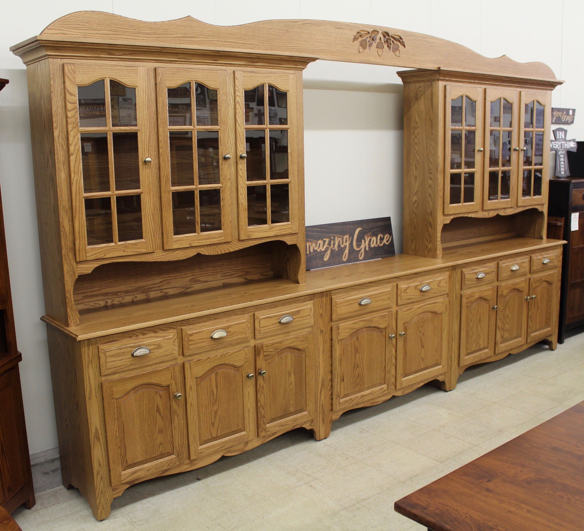 Amish Custom 8-Bay Country Hutch Oak (Many Other Wood Species Available)
