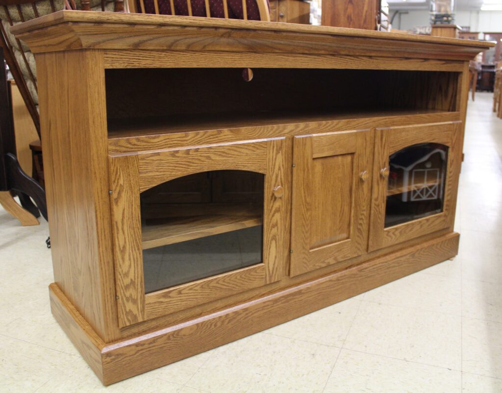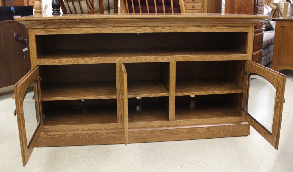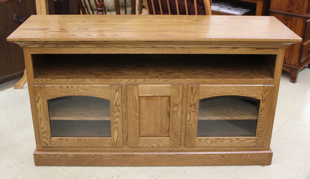Amish Deluxe Shaker 60″ TV Console Oak Wood (Also Available in Maple, Cherry, Hickory and Many Other Wood Species)