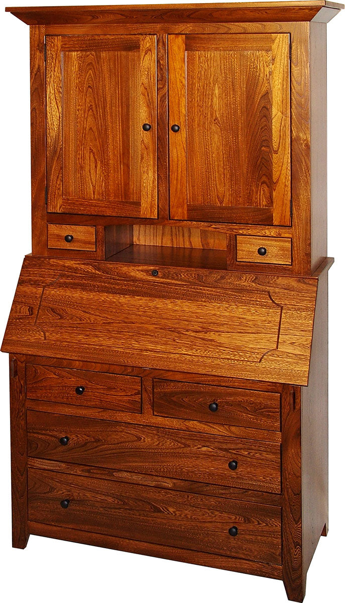 Deluxe Shaker Secretary Desk with Hutch Top and Wood Doors