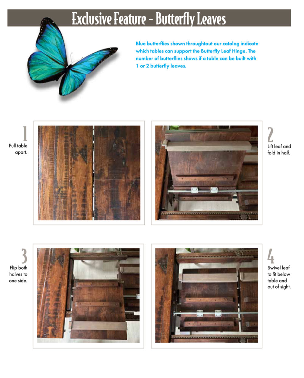 • Gear Driven Double Equalizer Slides on All Tables with Leaves to Ensure Smooth Opening / Closing