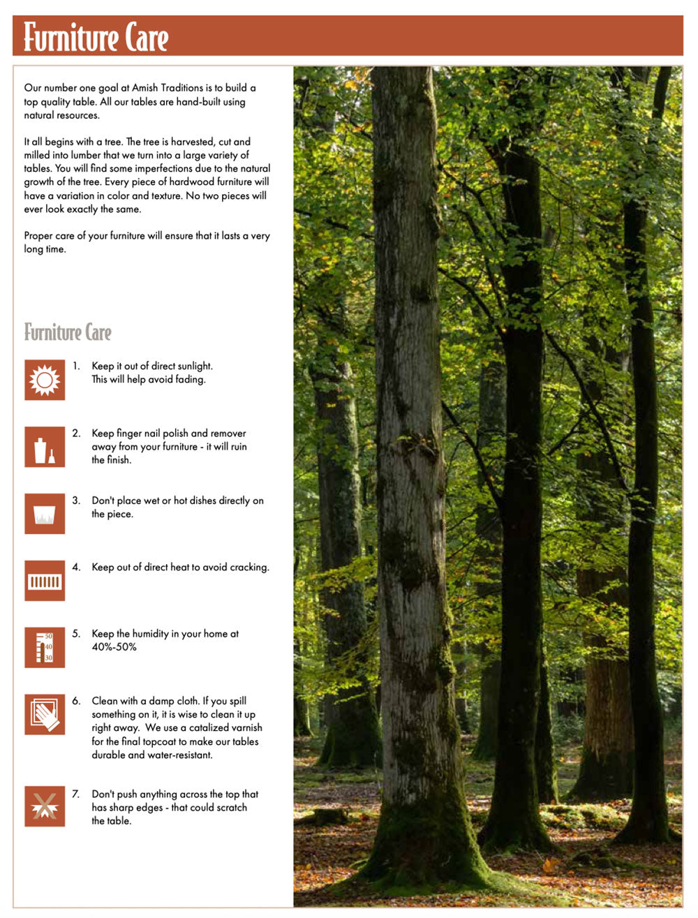 At Amish Traditions, all our products are built with you in mind! This means that once you choose your item(s), wood species, stain color, and other applicable selections, our Amish craftsmen will begin building your item(s). Each item truly is custom-made – specifically for you! This also means that your furniture will never have seen a showroom floor or an extended season in a warehouse.