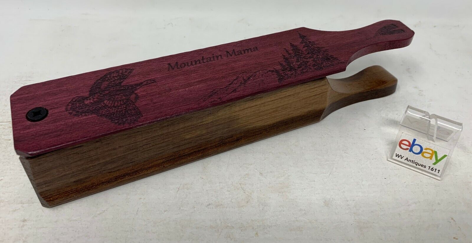 For Sale is a genuinely Amish Crafted "Mountain Mama" Turkey Call. The Call in the pictures is the Call that you will receive. All Calls have a tremendous sound, and these Calls have been very popular in our store for many years. Very neat item!