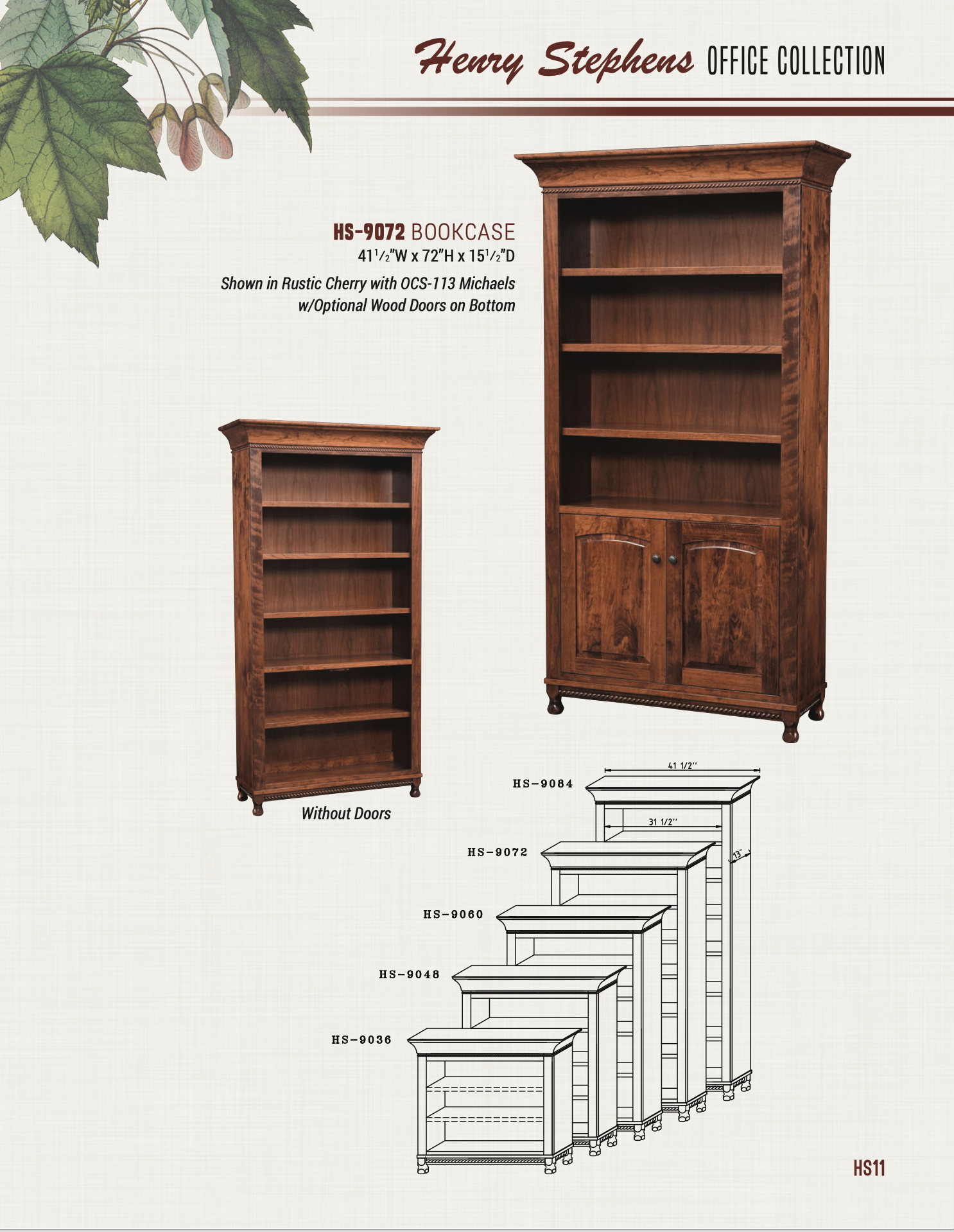Custom Sizes and Dimensions: Most items are available in custom sizes if needed or preferred. Desks and Bookcases can be made larger or smaller in almost all dimensions, Bookcases can be built with / without doors and other usual features.
