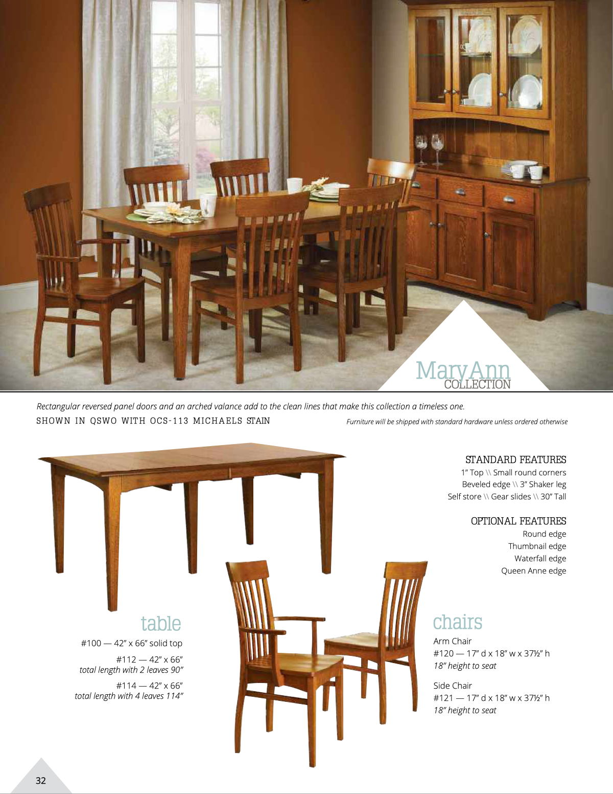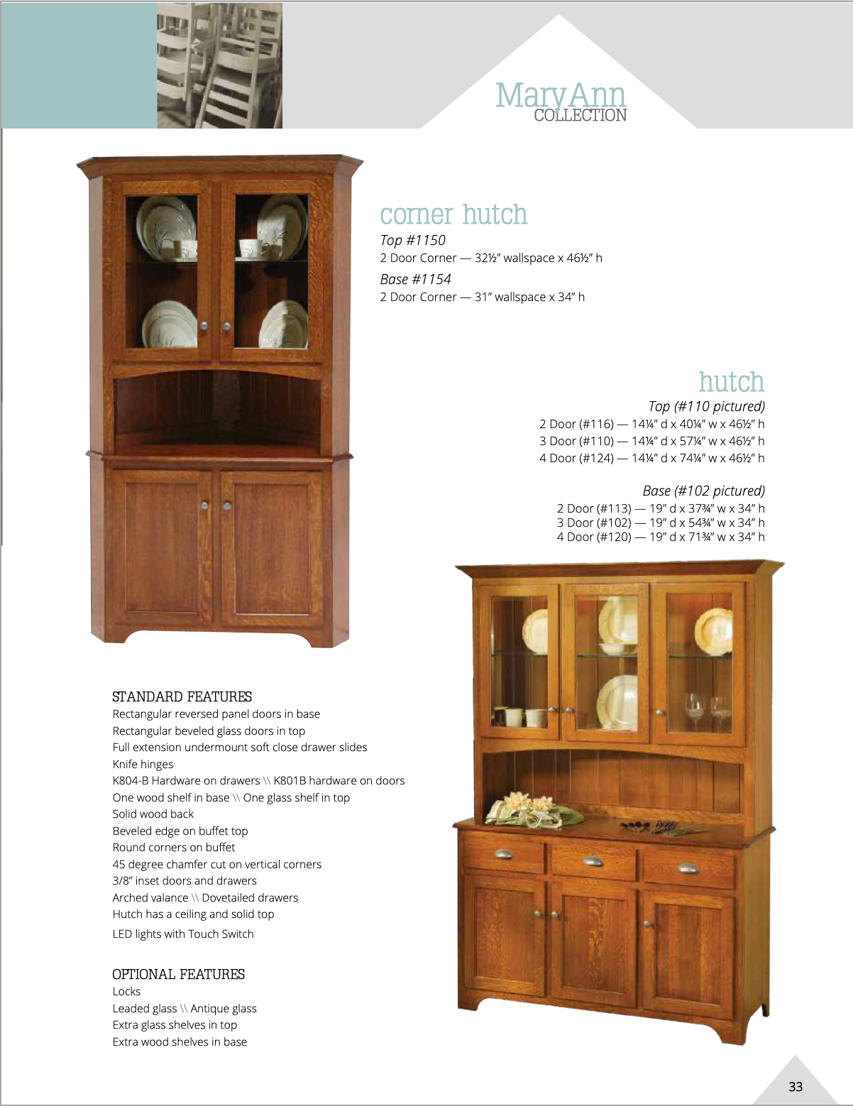Set includes 42" x 66" Table with 2 - 12" Leaves, 4 Side Chairs, 2 Arm Chairs, Dining Hutch - Contact us to order in other sizes and configurations!