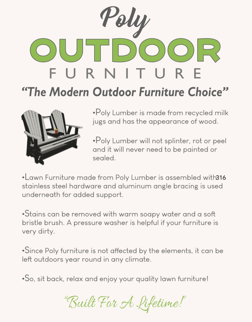 Poly Lumber, Stainless Steel Hardware, Aluminum Bracing