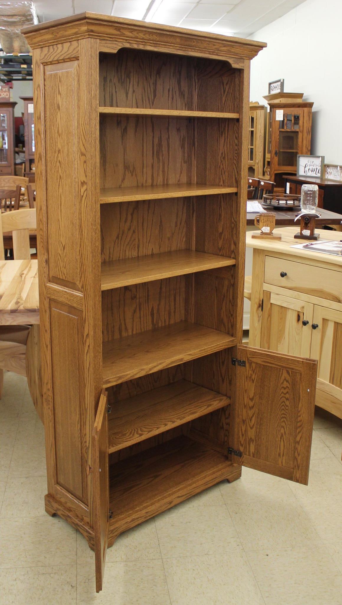 All of our Amish Crafted Bookcases feature Solid Wood Adjustable Shelves and Solid Wood Sides all matched with a superior finish and attention to detail.