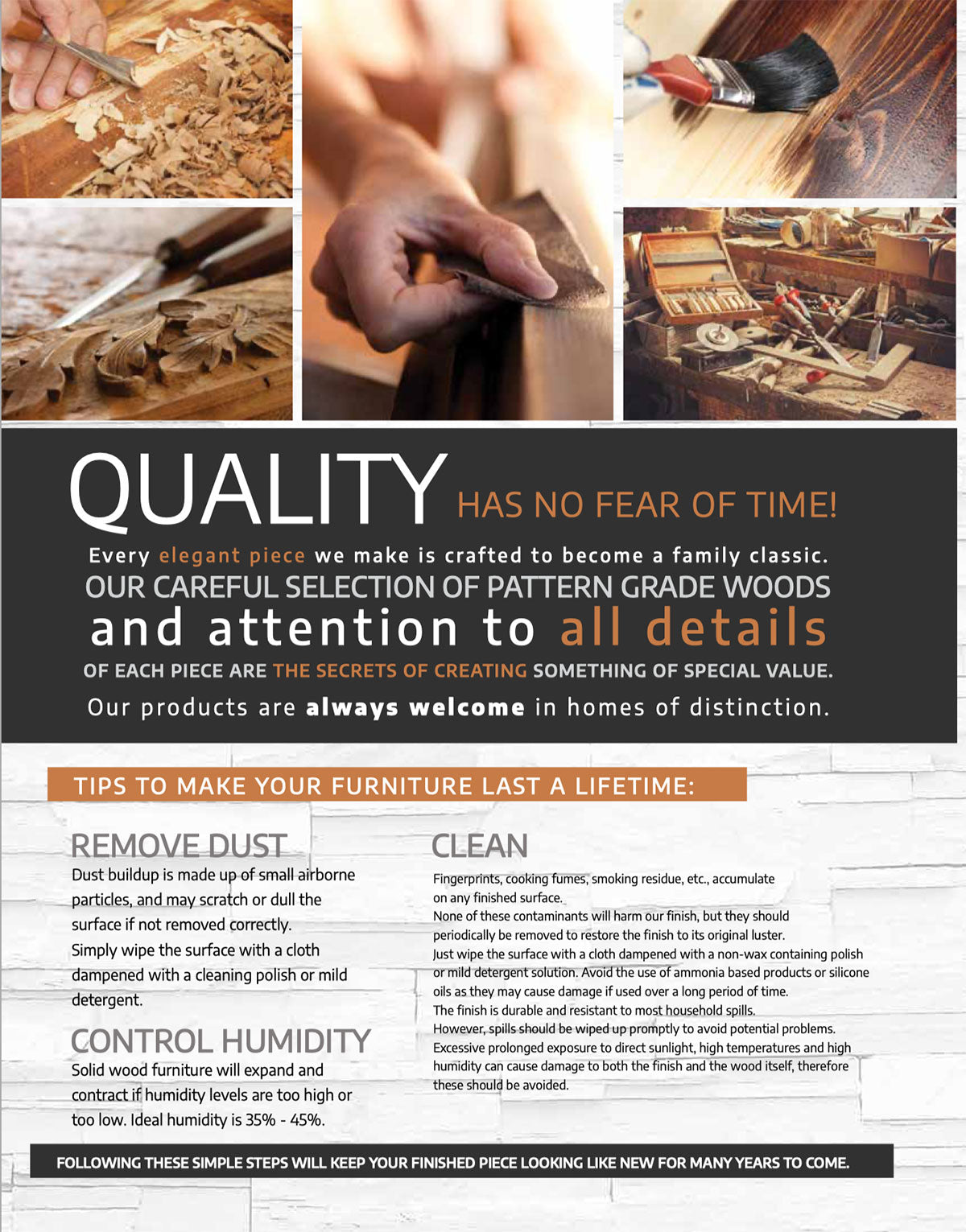At Amish Traditions, all our products are built with you in mind! This means that once you choose your item(s), wood species, stain color, and other applicable selections, our Amish craftsmen will begin building your item(s). Each item truly is custom-made – specifically for you! This also means that your furniture will never have seen a showroom floor or an extended season in a warehouse.
