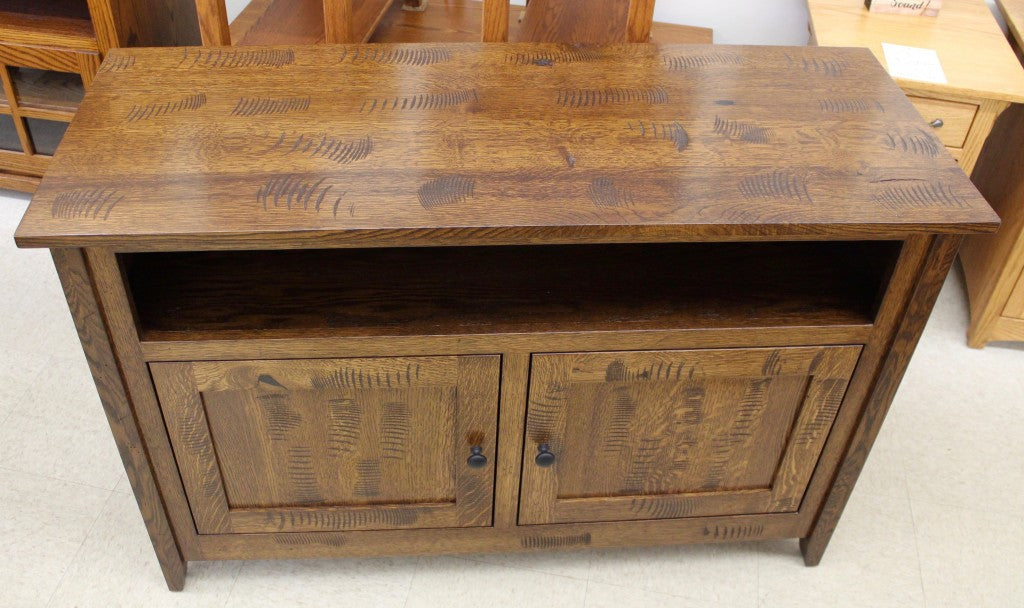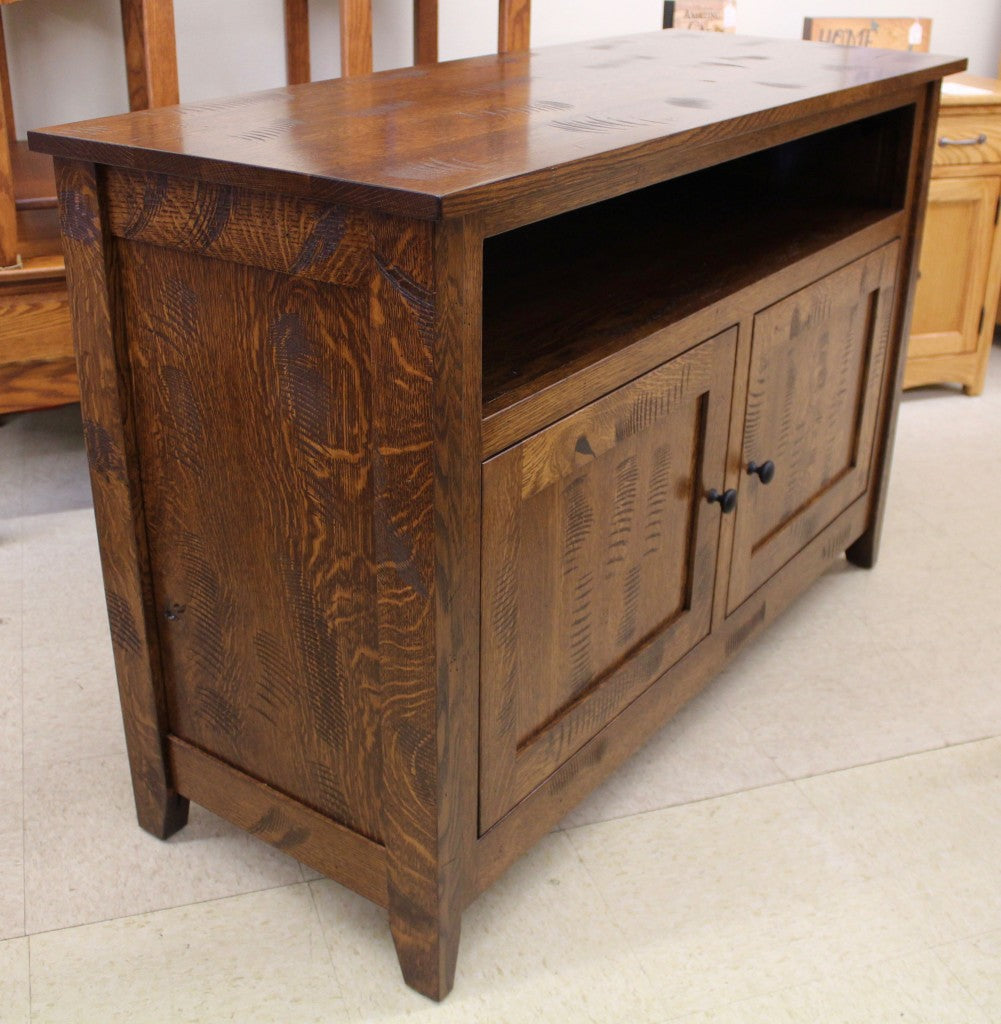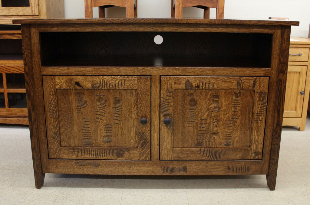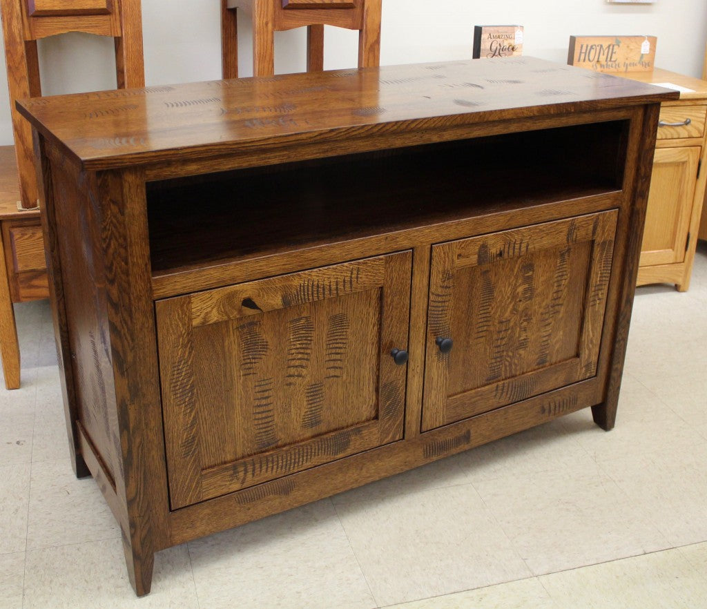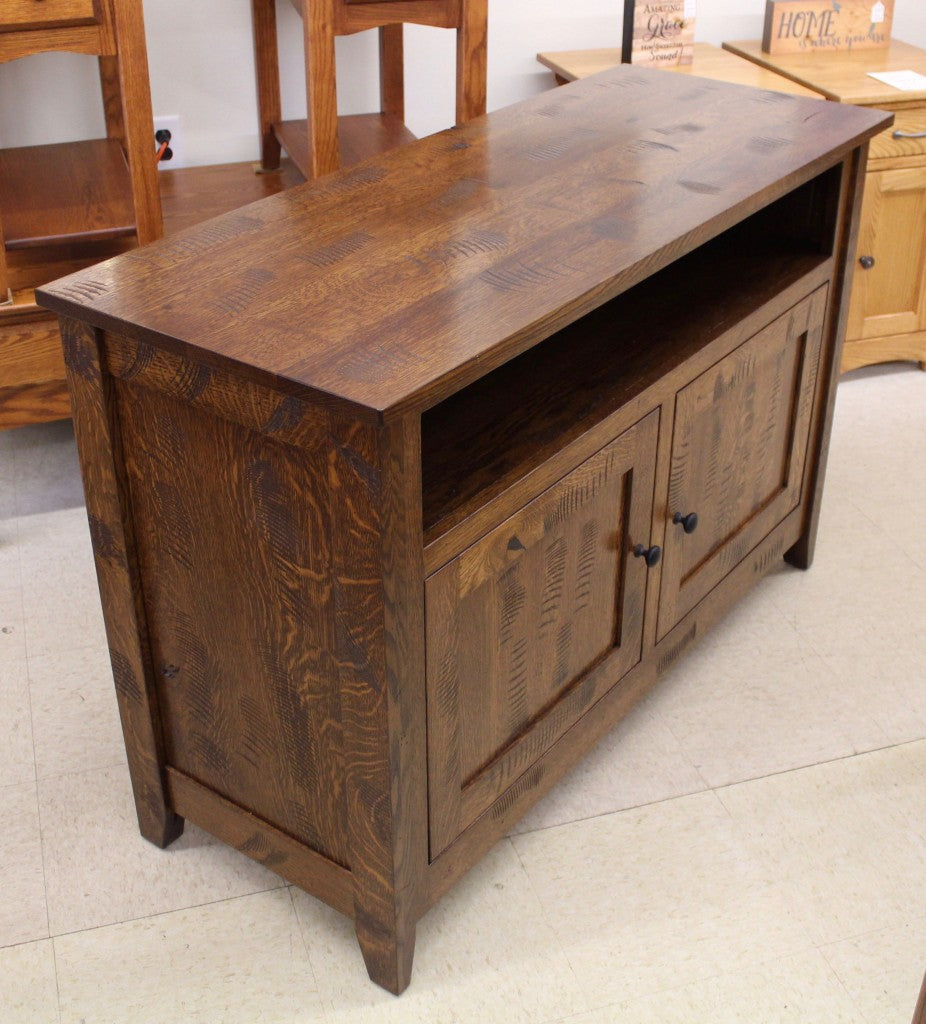 Amish Rustic Mission 48″ TV Console in Rustic 1/4 Sawn Oak and Distressed Rustic 1/4 Sawn Oak (Many Other Wood Species Available!)
