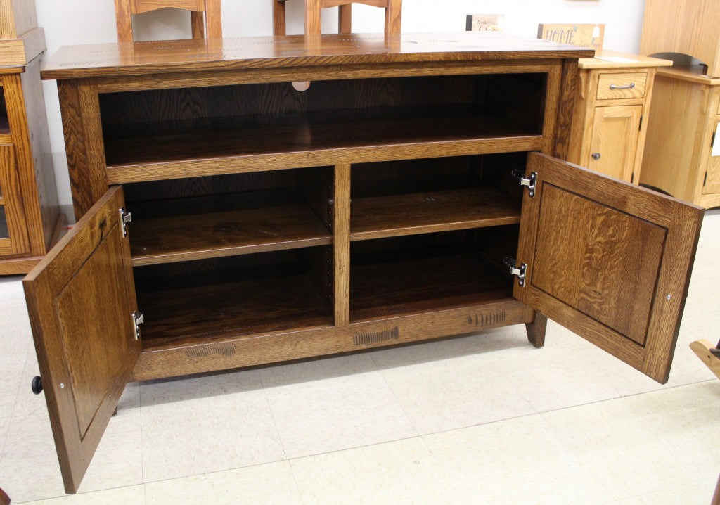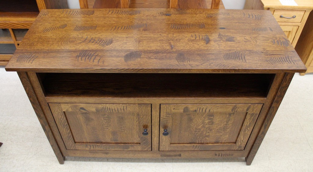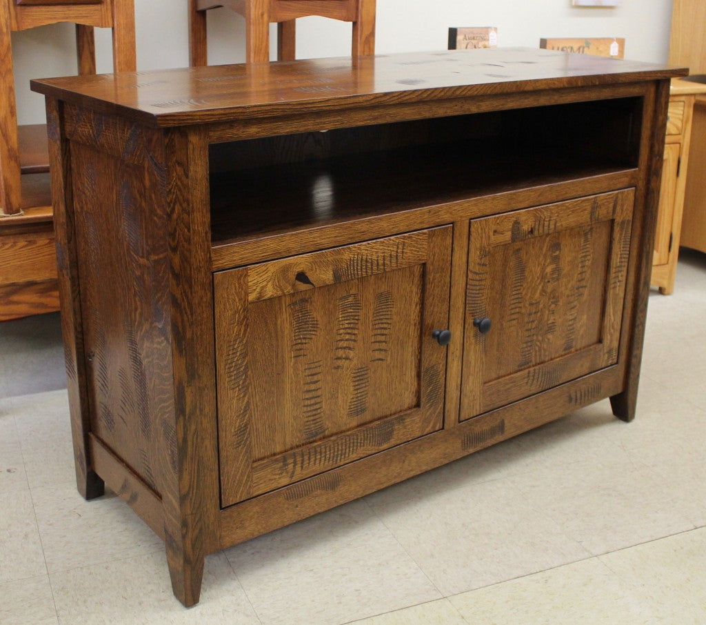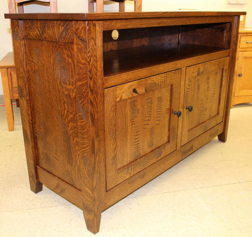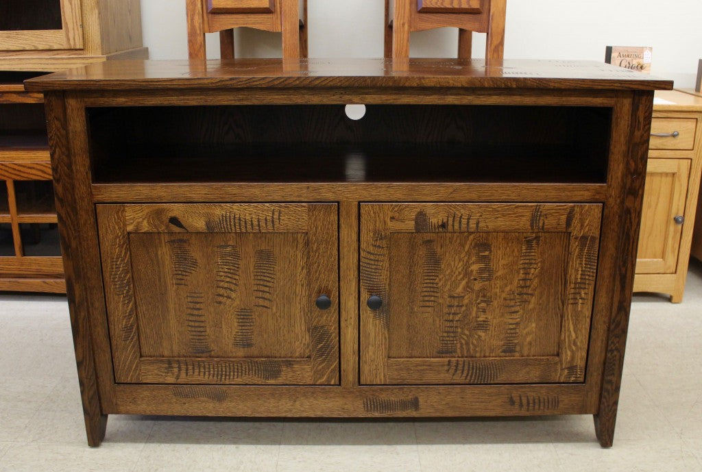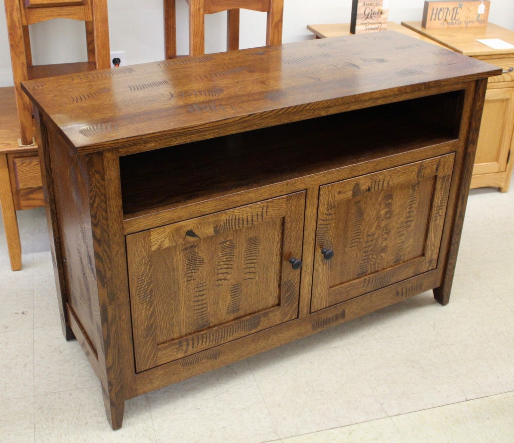 Amish Rustic Mission 48″ TV Console in Rustic 1/4 Sawn Oak and Distressed Rustic 1/4 Sawn Oak (Many Other Wood Species Available!)