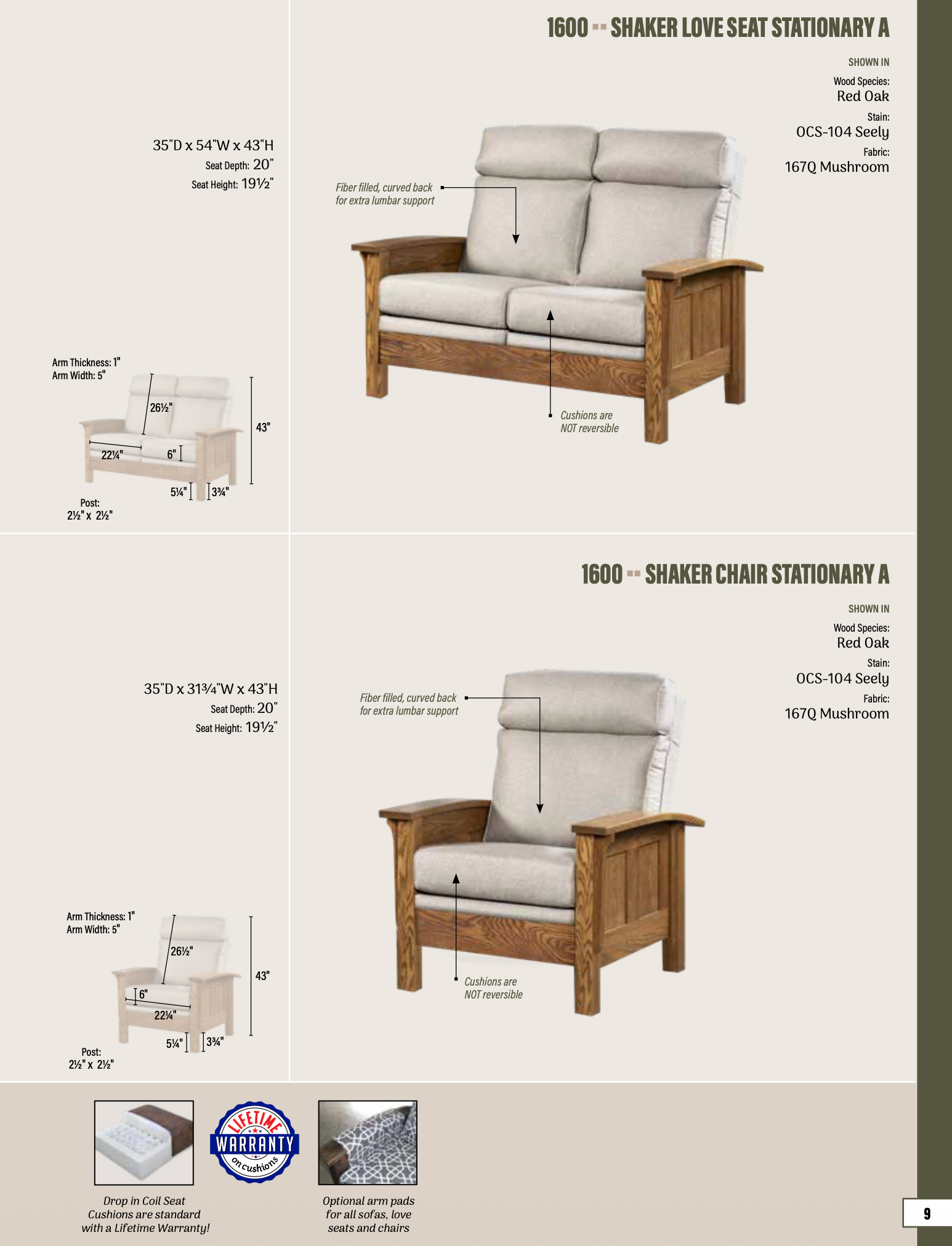 Item Number: 1600-Shaker Love Seat, Stationary A