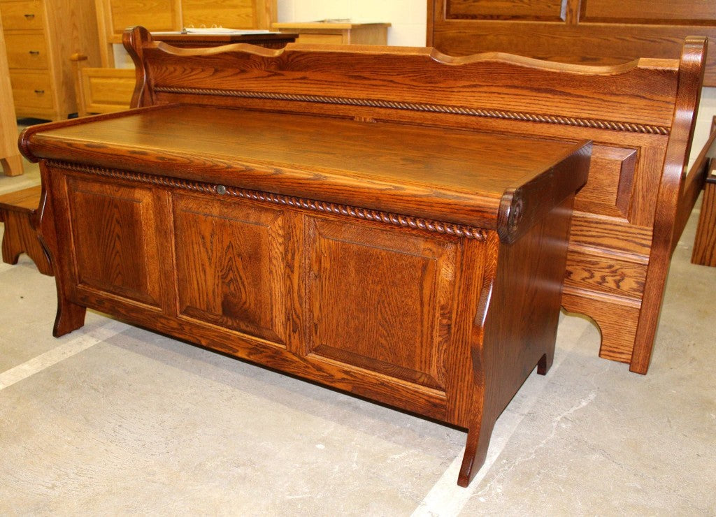 Amish Sleigh Blanket Chest with Rope Twist Oak, Also available in Maple, Cherry and Other Wood Species