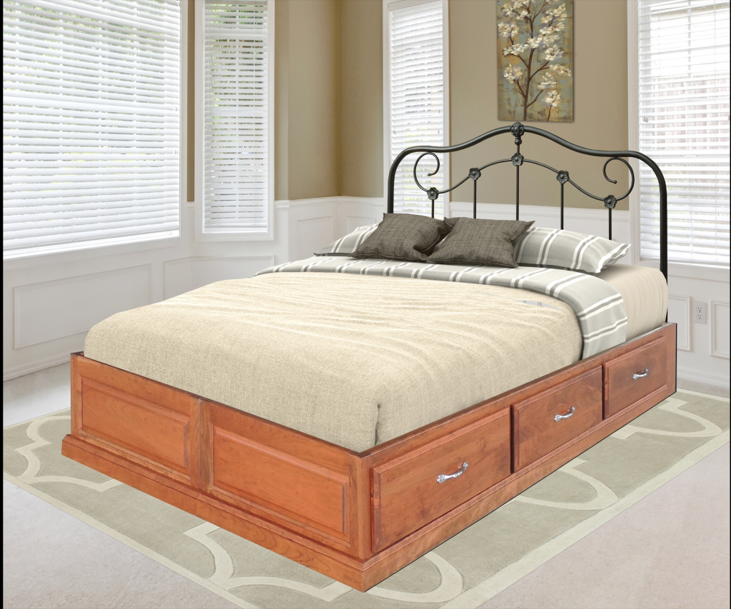 Amish Space Saver Platform Drawer Bed, Queen Size - Headboard Not Included Shown in Oak Wood, Also available in Other Wood Species