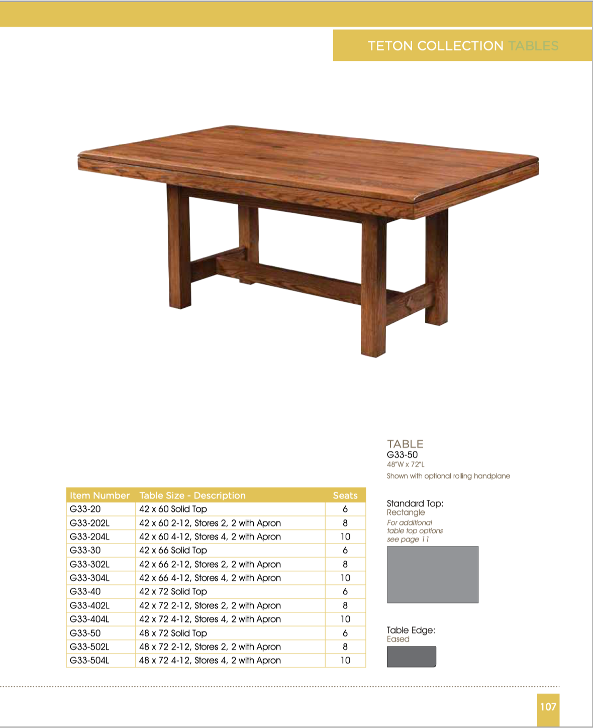 Leaf Options: Most all tables are available with and without leaves. In many cases, these leaves can self store underneath the table top! These features depend on the table dimensions and shape of the table top. Feel free to contact us if you would like more details on leaf options relative to the table that you like.