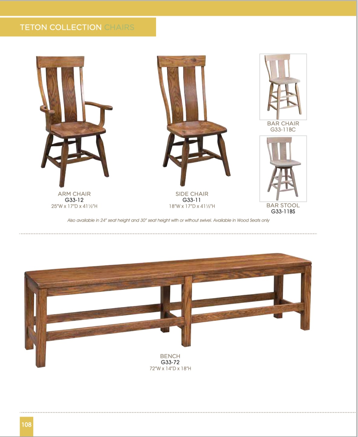 Wood Species: Many Wood Species Available Including Oak, Maple, Cherry, Hickory, Quartersawn White Oak and Others