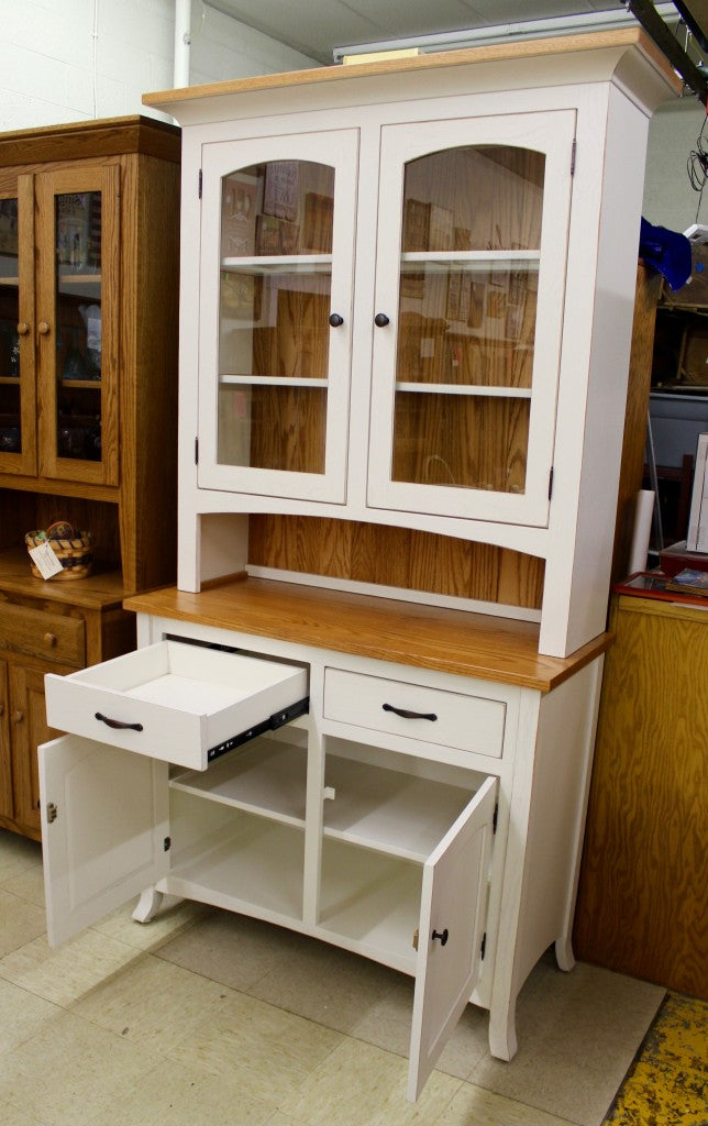 Shown here with custom two-tone finish. This one is a Country White Rub Through and Golden Oak combination, but there are many different paints and stains to choose from.