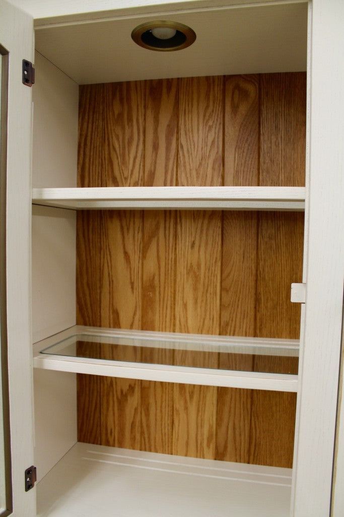 Price Includes: Wood Frame Glass Shelves, 3-Way Can Lights, Shiplap T&G Backing Inside Top Cabinet