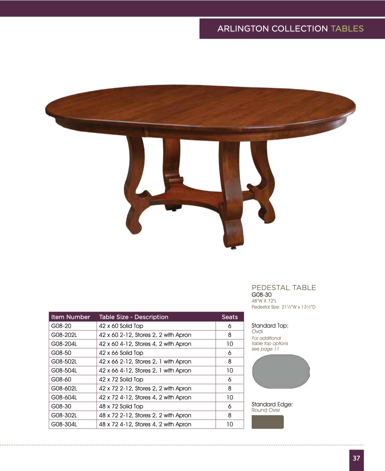 Leaf Options: Most all tables are available with and without leaves. In many cases, these leaves can self store underneath the table top! These features depend on the table dimensions and shape of the table top. Feel free to contact us if you would like more details on leaf options relative to the table that you like.