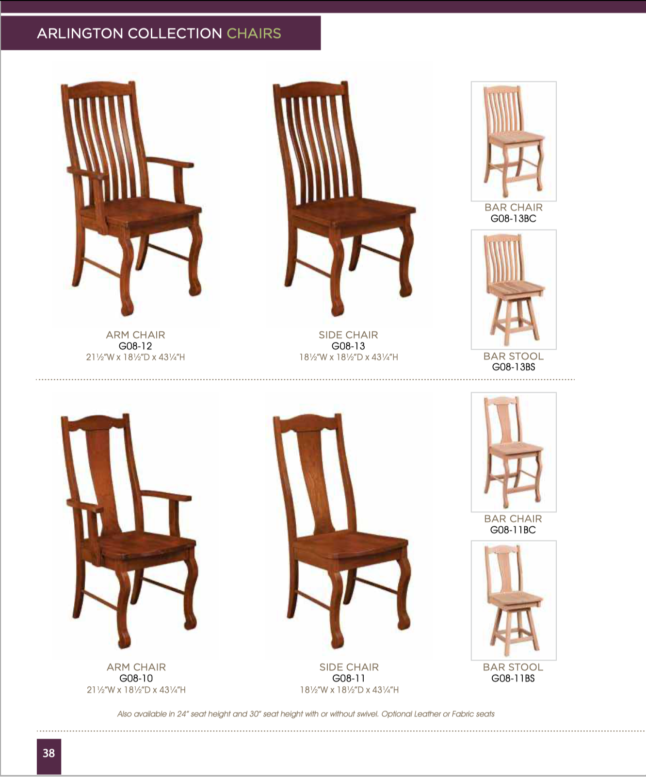 Wood Species: Many Wood Species Available Including Oak, Maple, Cherry, Hickory, Quartersawn White Oak and Others