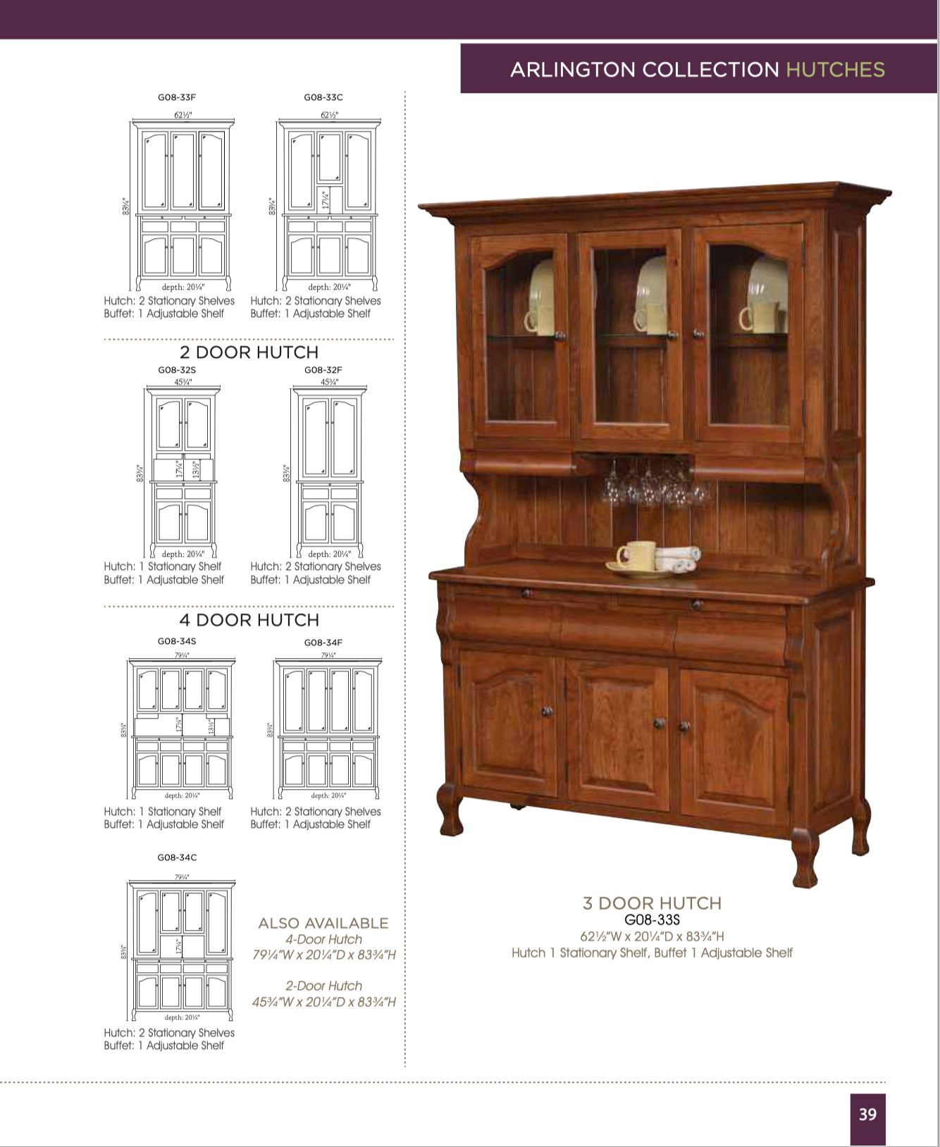 Custom Sizes and Dimensions: Most Tables, Hutches, Servers, Buffets, etc, are available in custom sizes if needed or preferred.