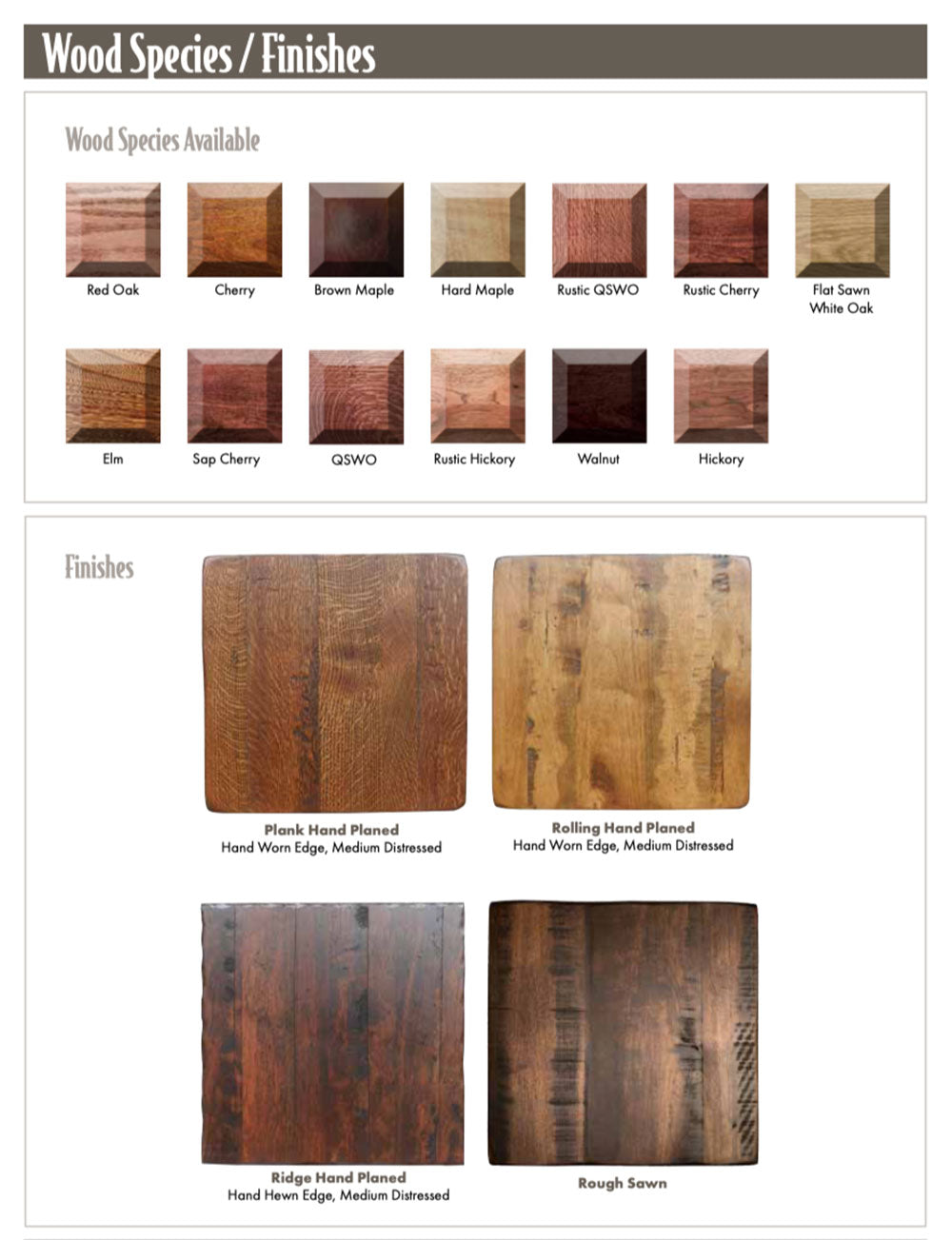 • Two Tone Finishes, Painted Options, Hand Planing and Rough Sawn Options All Available at Additional Cost
