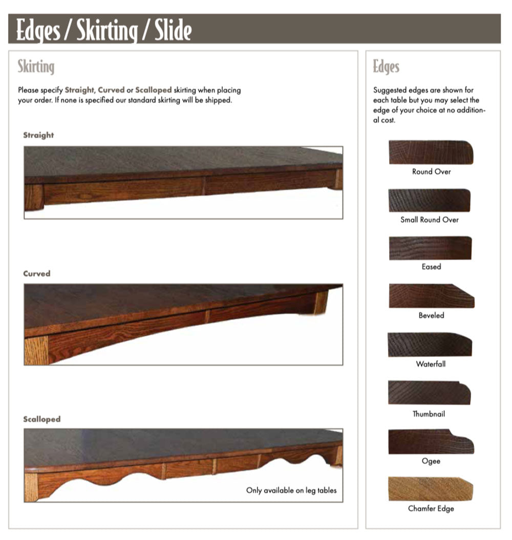 • All Tables Available with Various Top Shapes and Edge Profiles if you Prefer Something Other than the Standard Options